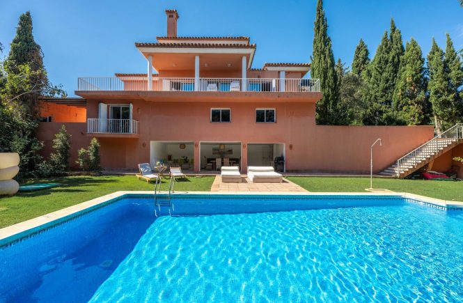Welcome to Villa Indira. A spacious 509 m² villa located in the prestigious Zona B of Sotogrande. The property sits on a private 1,125 m² plot and offers 5 bedrooms, 4 bathrooms, a secluded garden, a large swimming pool, and a carport. Built in a classic Andalusian style, the villa has authentic charm and character. With some updating, it holds the potential to become a truly spectacular family home in one of Southern Spain’s most exclusive communities.